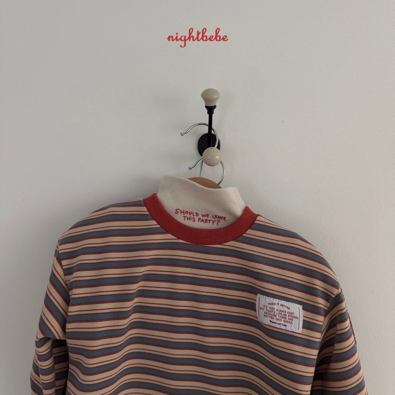 Nightbebe | stripe T(Red M95-105)